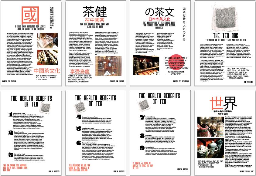 I thought a good idea would be to use Chinese and Japanese language and symbols as Tea culture is very big in those countries